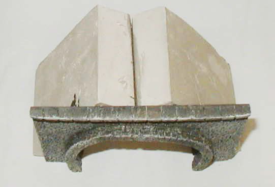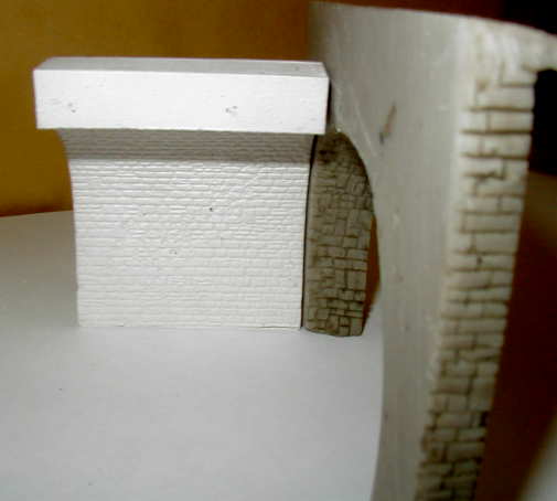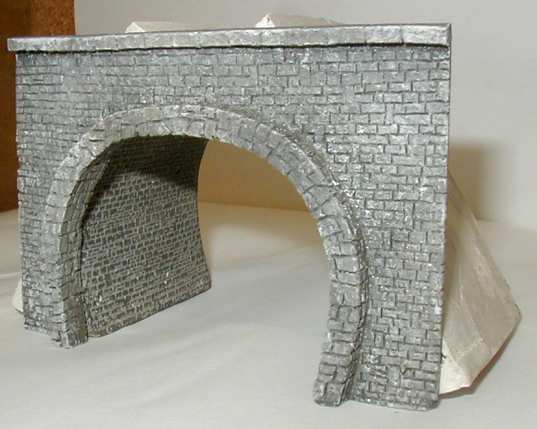 Gerade 2-gleisige Portale wirken wegen ihrer Größe häufig wie Höhleneingänge. Mit den Röhren lässt sich dieser Eindruck weitgehend abmildern. Zwei Abgüsse ergeben -gegenüber gestellt- eine Röhre. Die Krümmung der Röhre passt zu unserem Portal T02. Die Oberflächenstruktur ist einfacher gehalten, als die Frontansicht des Portals.